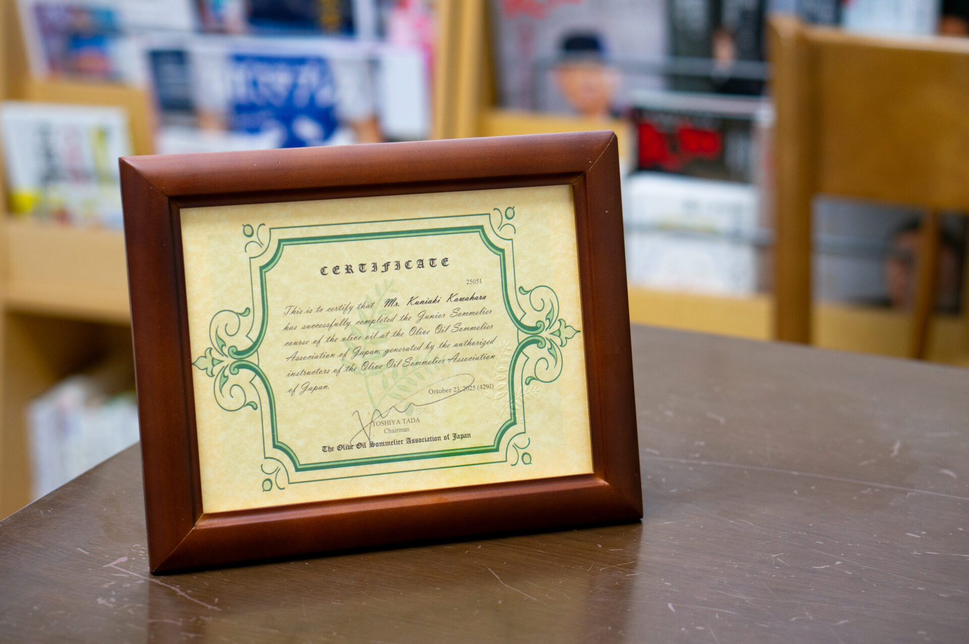 その探究の先で、ジュニアオリーブオイルソムリエの資格を取得しています。